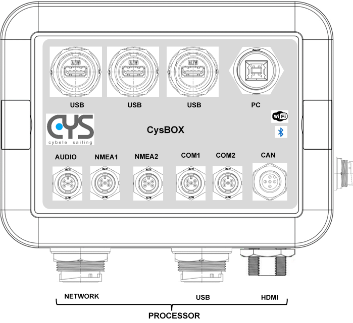 CysBOX est l’unité centrale de l’ensemble CysBOX System, « cœur » du système, qui offre des fonctionnalités avancées basée sur des applications logicielles adaptées : autopilote, gestion d’alarmes …, et les logiciels de gestion et de navigations les plus répandus (serveur signal-K, cartographie, …).